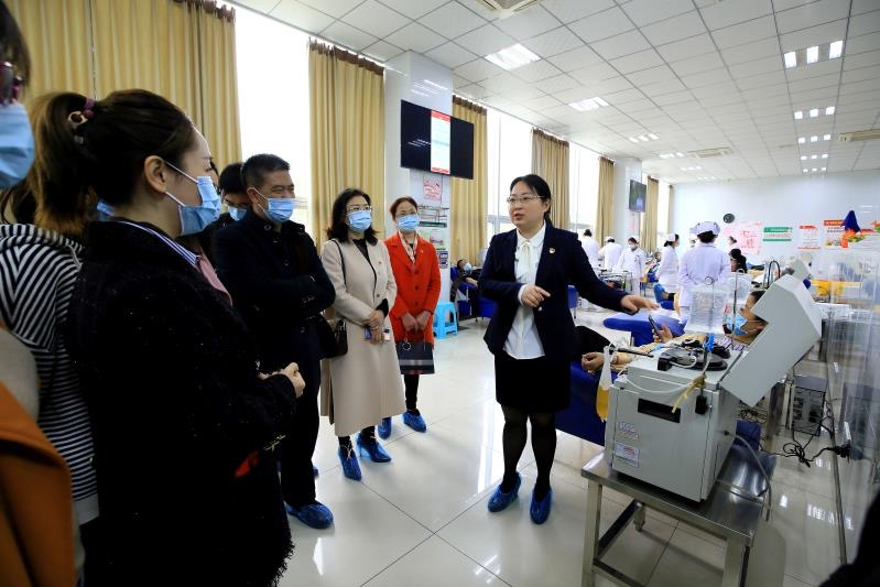 中国生物蓬溪血浆站党支部书记、站长代云霞带领县卫健局机关支部全体党员干部参观了献血浆全流程,从血源登记、健康征询、体格检查、血液检测、血浆采集等方面作了详细讲解,党员干部们纷纷表示蓬溪血浆站环境干净整洁、员工精神饱满、操作规范严谨、质量意识强、专业技能高。