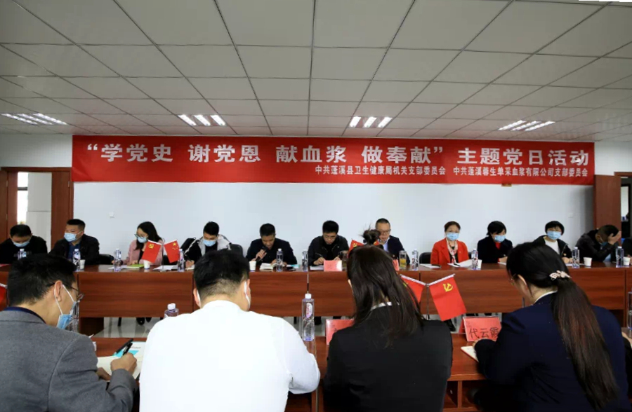 为纪念中国共产党建党100周年,充分发挥党员先锋模范作用。4月9日上午,蓬溪县卫健局党组书记、局长张启先带领县局40余名党员干部来到中国生物蓬溪血浆站开展“学党史、谢党恩、献血浆、做奉献”主题党日活动。